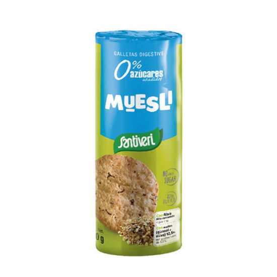Harina integral de trigo (54%), edulcorante (jarabe de matitol), aceites vegetales (girasol, oliva)(12.5%), muesli (8.7%: copos de trigo, copos de centeno, pasas, lamendras, copos de avena, copos de cebada), fructooligosacáridos(3.9%), glasifficante (bicarbonato amónico), colorante (caramelo natural), emulgente (lecitina de girasol), aromas, antioxidantes (extractos ricos en tocoferoles) y ácido fólico.